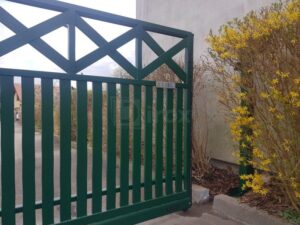 Zarówno butelkowa zieleń, jak i odcienie zbliżone do mchu wracają do łask w 2026 roku. Zielony kolor ogrodzenia szczególnie dobrze na obszarze silnie zurbanizowanym, wśród gęstej zabudowy, gdzie dodatkowo wzmocni naturalną zieleń ogrodu i otoczenia wokół posesji.